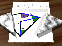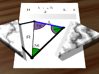 I tasselli rombici vengono spezzati in triangoli isosceli aurei
